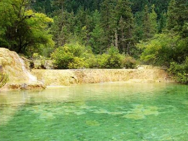 转花池藏匿在高山灌木的绿茵之中,池水清澈见底,虽然面积不大,但是“麻雀虽小,五脏俱全”,这里简直就像是一个天堂,如果说你在黄龙风景区参观了其他的景点觉得没什么多大的兴趣的话,那么这里一定能让你眼前一亮,感触颇多,池下面多股泉水,汩汩涌出,在水面上形成许多波纹,偶然有两朵鲜花合上了波纹的节奏,波纹会带着花朵向相同的地方旋转,很是好看,并且,在“黄龙庙会”期间,前来湖边投钱币占卜爱情的男女络绎不绝,这更给这片小池子增添了一份神秘的色彩。