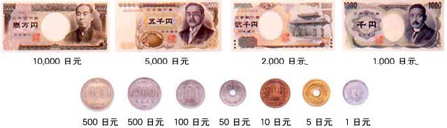 日本的货币发行银行是日本的中央银行——日本银行。日本银行发行的纸币面额有10000、5000、2000、1000日元等面额,另有500、100、50、10、5、1日元铸币。1日元等于100钱。*数据仅供参考,交易时以银行柜台成交价为准