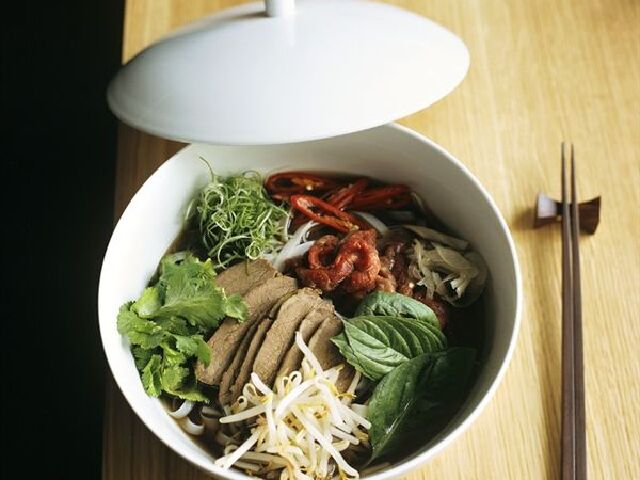 越南米粉看似平淡无奇,汤头里却大有学问。三磅牛肉骨、一只小母鸡、加生姜、越南调料香茅、香菜籽、洋葱,一起放在锅内小火炖3-5小时,炖出的高汤才是正宗的。