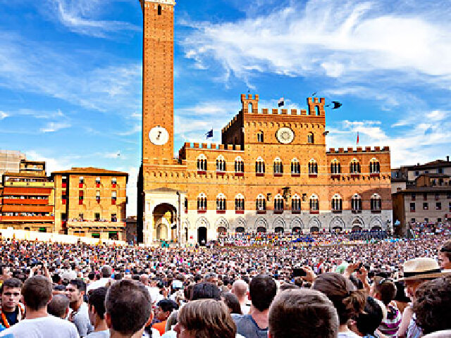 锡耶纳赛马节是世界上最著名的赛马节之一。每到七、八月,就会有10个赛马手带着他们的爱马汇集在小镇的田野广场参加比赛,另外在赛前还有一段华丽的盛装游行。参赛的马匹和骑士都会穿着不同颜色服装来代表锡耶纳的不同街区,随后还要绕着广场亮相。若骑手不幸地从马上掉下来,他的比赛就结束了。整个令人兴奋的赛马比赛通常也就持续90秒钟。