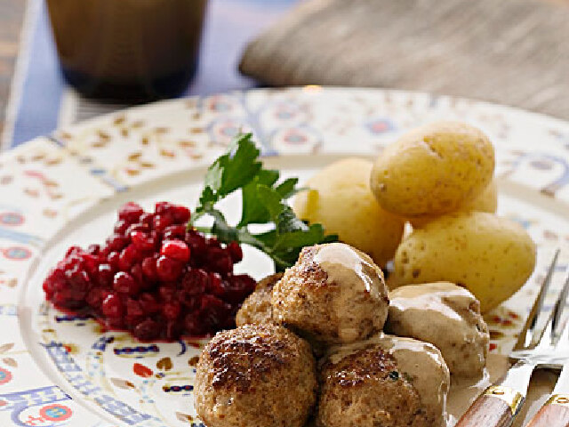瑞典肉丸是当地最具代表性的瑞典菜。当地一般习惯于将煮熟的土豆与其搭配,也有时候会用新鲜的的腌制黄瓜与其搭配食用。其口感爽口,味道正宗,是当地人们喜爱的食品之一。