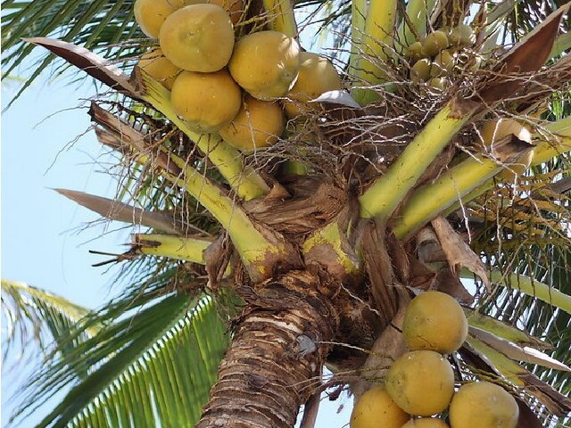 海滩旁边的椰子树上的椰子就非常美味,贩卖的椰子都是刚从树上摘下的,廉价又解暑,椰子汁夜色如水,非常的清甜、透亮,含有丰富的蛋白质、脂肪、维生素C及铁、磷等各种丰富的矿物质,是老少皆宜的美味佳果。