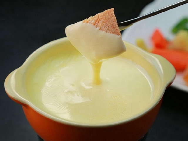 奶酪是瑞士人生活和生命中必不可少的一部分,而相传奶酪火锅起源于阿尔卑斯山地区的小村落里的无心之举,却让瑞士人却不可自拔的爱上了这道料理。醇香四溢的奶酪放入当地盛产的葡萄酒中,加热使其融化,再用香喷喷的小面包沾着吃,最后再配上一杯口感香醇的红酒会唤醒你的全部味蕾。