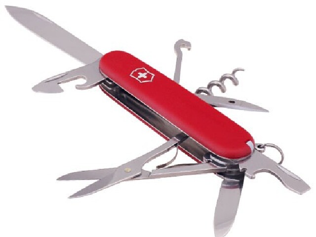 瑞士军刀(德语:Schweizer Armeemesser或Schweizer Offiziersmesser),又常称为瑞士刀(Schweizer Messer)或万用刀,是含有许多工具在一个刀身上的折叠小刀,由于瑞士军方为士兵配备这类工具刀而得名。在瑞士军刀中的基本工具常为:圆珠笔、牙签、剪刀、平口刀、开罐器、螺丝起子、镊子等。要使用这些工具时,只要将它从刀身的折叠处拉出来,就可以使用。 购买地点:工艺品店 价格:几十欧到几百欧