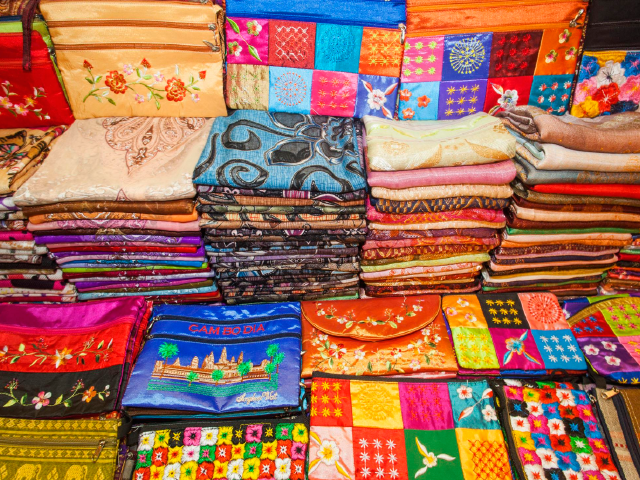 柬埔寨的民族特色工艺品像是银器、纺织、木雕、石刻品等,在当地市场都可以买到。