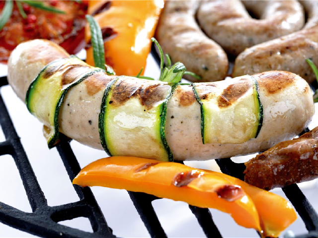 烤香肠 (Bratwurst)德语区烤制白香肠,蘸芥末酱或番茄酱与炸薯条共同食用,或用此香肠做的汤。