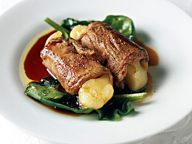 牛肉切片,卷上美味乳酪,煎制后,十分香嫩。