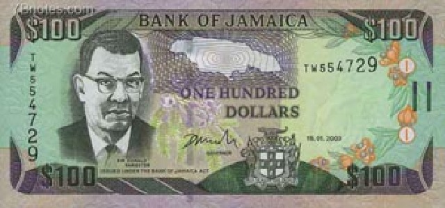 牙买加元(JMD)从1969年起为牙买加的法定货币。通常它被简化为美元标志 $,或者J$ 或 JA$以使其与其它美元标价的货币区分开来。此外,美元在大部分地区可以直接流通。 纸币的面值有1000,500,100,50,20,10,5,2和1元。 硬币的面值有1、5、10、20、25、50分和1元。 其中币种的兑换进位为1元=100分。