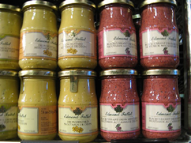 第戎芥末其特殊风味是由高级的芥末子,加上当地葡萄酒于未成熟葡萄发酵所调制而成,通常由颗粒状和糊状两种。1747年就成立的Grey Poupon 芥末店久有盛名,以moutande maille 之名经营,顾客络绎不绝,店家特别推荐含有葡萄酒Au Vin Blanc,只要15F。除了芥末以外,用来装芥末的陶瓷瓶也可以当成艺术品收藏。