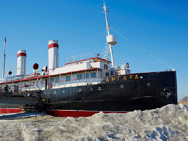 安加拉号破冰船是贝加尔湖上第一艘破冰船,建于1895年,为了当时连接西伯利亚铁路横穿贝加尔湖,直到1905年环贝加尔铁路开通,还一直作为渡轮运作到1962年,然后触礁沉没,直到1989年打捞起来作为博物馆开放。
