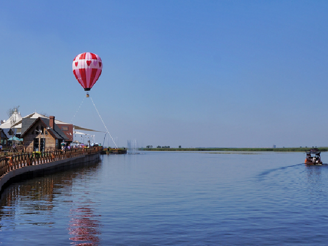 乘坐热气球这样浪漫的活动项目,在七海里国家湿地公园也可以亲自体验。当你坐在热气球上,缓缓飞上高空,就能饱览湿地公园所有的美景。从上空向下俯瞰,成片的芦苇在广阔的水面上随风摇动,连成一片,正是所谓的“天水合一,苇海碧波”。在热气球上感受微风拂面,伴随鸟儿从身边飞过,传来声声鸣叫,真是一幅浪漫的风景画。