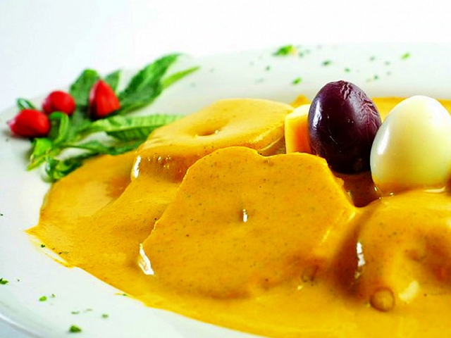 Ocopa这道菜可以追溯到印加帝国,是典型的秘鲁美食菜。Ocopa主要成分是辣椒酱,黄色土豆和Huacatay(很香的草本植物,又称“黑薄荷”)。其成分包括烤花生,炒洋葱和西红柿,奶油或炼乳,饼干或干面包和盐,有时候也选生菜,煮鸡蛋和橄榄。这道菜是素食,是一道极美味的开胃菜。