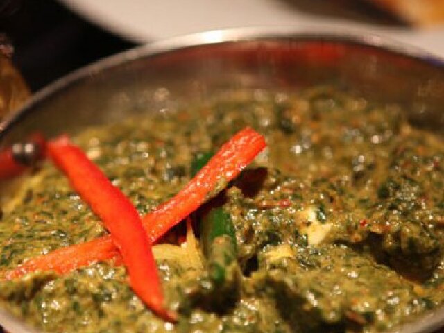 主要原料是菠菜,印度吉士,配料是香料等。将菠菜捣碎加入印度自制的吉士中煮熟即可。
