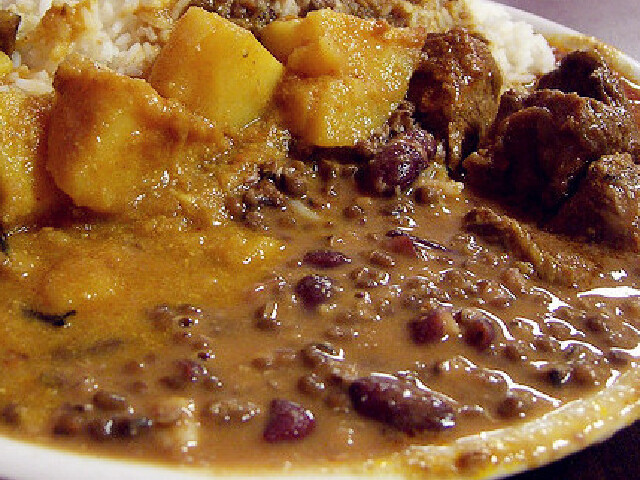 主要原料是长米,羊肉,鸡肉,蔬菜,配料是香料,蔬菜。将羊肉鸡肉切块飞水,加入洋葱咖喱等炒至八成熟,加入长米中煮熟,搭配炒好的蔬菜即可。