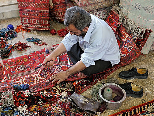 波斯地毯波斯地毯是伊朗著名的手工业之一,自古在国际上享有盛誉,以优良的质地、古朴雅致的图案和精美的工艺受到世人的喜爱。据考证,其编织和生产的历史至少已经有2500年。波斯地毯的一大特色是其染料从天然植物和矿石中提取,染色经久不褪不变,以抽象的植物、阿拉伯文字和几何图案进行构图。在哈马丹,你可以买上一块波斯地毯,美观实用。