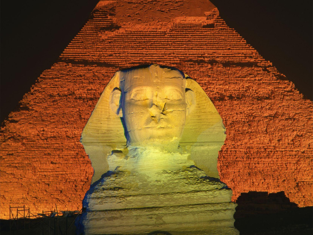 声光表演场位于吉萨金字塔区斯芬克司像的对面,距麦纳屋奥贝里宾馆1公里。这里每天晚上有两场声光表演,是用光和音交织在一起表现人类初期的文明,这种在金字塔下的表演能令人产生无限的遐思。为了方便游客能看懂表演,这里每天使用不同的语言讲解,星期一为英语和法语;星期二为法语和意大利语;星期三为英语和法语;星期四为阿拉伯语和英语;星期五为英语和法语;星期六为英语和西班牙语;星期天为法语和德语。 演出时间:每晚六点半和七点半各有一场(根据季节变化会稍事调整)