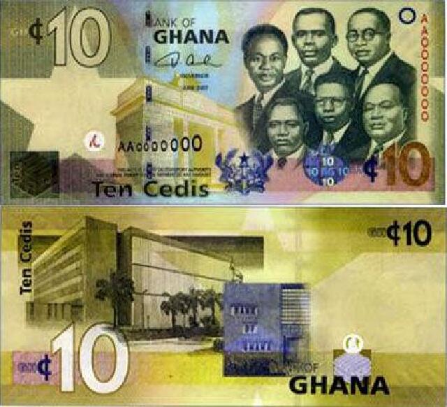 目前流通的新塞地面额为1、5、10、20、50塞地。硬币币值有: 1/2、1、2.5、5、10、20、25、50比塞瓦。1GHC=100 pesewas(比塞瓦)。1new cedi(C)=100 pesewas。