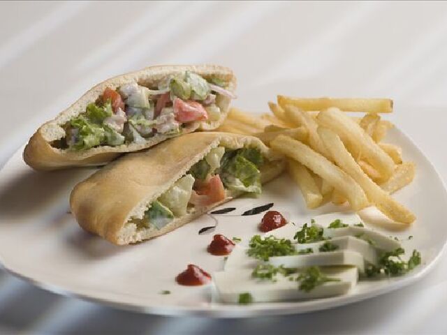披塔(Pita)是当地最受欢迎的主食,大多为圆形面饼,外形有点像面包,又有点类似于中国北方的夹馍,但比夹馍更大更薄,中间是空心的,像个口袋,所以也有地方把它叫做口袋面包。在以色列的面包店,食品店或是超市里都能找到这种保存方便简单的主食。