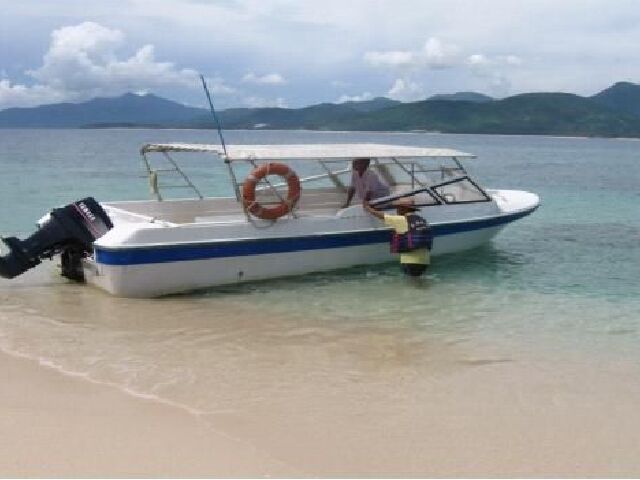 岛高62.8米,地形陡峭,由岩石组成,表层为红粘土,岛上杂草荆棘丛生,海浪汹涌,其外观独特,一面树林繁茂,两面怪石林立,形成鼎立之势,浪花簇拥,异常壮观,而岛的另一面则是白沙细软如粉的幽静沙滩。该岛的两岸有一片沙带可供泊船登岸,岛附近水深5~23米。