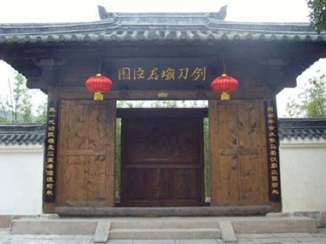 公元221年,刘备利用这里人丁兴旺,物产丰盛的有利条件,广泛招兵买马,为建立蜀汉政权作着充分的准备。剑刀坝就是他操练士兵的地方,这里每天剑飞刀舞,故而被称为“剑刀坝”,流传至今。剑刀坝君臣园,是以三国时期蜀汉人物为素材而表现的蜀汉人物园林,其目的是突出昭化古城的三国文化主题。园内的游道是以太极阴阳鱼眼图为布局,蜀汉人物雕像掩映于竹林之中,给人以神秘而幽深的感觉。君臣园共有蜀汉人物雕像11尊,除刘备外,还有张飞、庞统、费祎、姜维、霍峻、鲍三娘等雕像,以展现风采。