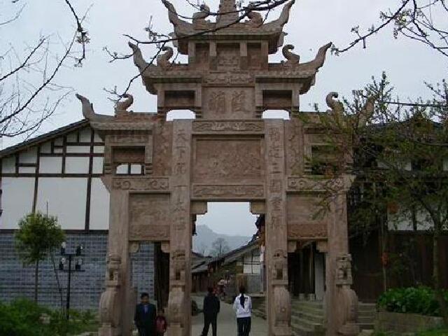 葭萌坊,整个牌坊图饰古朴典雅。从刘备入主葭萌到蜀汉灭亡52年历史,使昭化三国文化成为历史文化中耀眼的一环。史载了刘备、诸葛亮、庞统等众多三国英雄人物曾在昭化运筹帷幄、跃马扬戈,留下了大量的三国蜀汉遗迹:费祎墓、战胜坝、天雄关、姜维井等等,所以被誉为“蜀道三国重镇”。嘉陵江被笔架山和翼山分割后形成了一道阴阳太极图。面积为20平方公里,昭化古城正好位于太极图鱼眼之上。