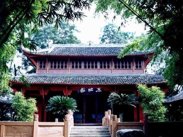 沫若堂位于灵宝峰西北一隅,由民房修萁而成,朴素雅致。这是为纪念出现代文化巨匠郭沫若而建的。门额“沫若堂”三字为楚图南所书,门两侧是马识途的对联。上联:峨眉钟灵,大渡铸魂,中华唯怀,黎庶系心,笔摇落山河,真是文豪本色;下联:女神惊世,屈原壮魄,雷电为颂,洪波度曲,诗成泣鬼神,果然名士风流,高度赞颂了郭沫若在中国文学史上的业绩。堂前约10米的台阶上,屹立着郭沫若像。雕像旁立一支花岗石巨笔,笔杆上镌刻屈原等图案。象征郭沫若永世不灭的成就。沫若堂陈列着郭沫若生平事迹图片,以及有关研究成果。