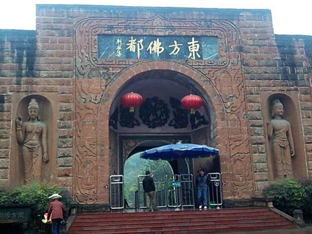 东方佛都,距乐山大佛仅一里之遥,是乐山大佛旅游景点佛文化的延伸和景区的主要组成部分,在不算大的面积范围内,集中仿制了国内外佛像三千多尊,利用自然山体延伸,采用摩崖圆雕、浮雕、雕刻、壁画等表现形式,选用不同材质,有石刻、铜铸、彩塑、墨玉等各类大小佛像雕塑。登山大草堂可观云海,旭日东升、晚霞西照,远望群山,重峦叠嶂、奇峰突兀、姿态万千。