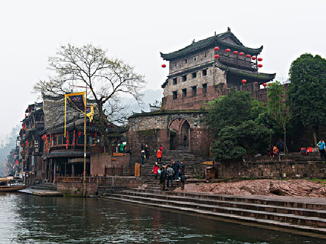 沱江跳岩,位于凤凰古城北门外沱江河道中。始建于清康熙四十三年(1704年),旧时是进出凤凰古城的主要通道之一。乾嘉苗民起义,辛亥革命凤凰光复起义、解放战争,这里都是进攻古城凤凰的主要通道。沈从文、黄永玉等文学艺术大家,也是从沱江的“跳岩”走向世界的。