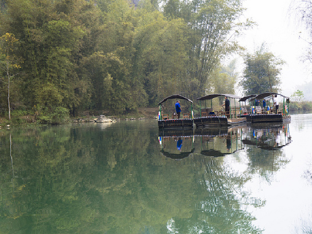 漂流的水面清澈见底、平如镜面的河面上,游客坐在竹筏的竹椅上,安逸的观赏两岸郁郁葱葱的灌木丛和椰树林,尽情的享受万泉河的温柔恬静,静静的,仿佛空气和时间都凝固了。或许突然间,不远处的欢呼声搅动这片刻宁静,也使得平静的漂流顿时生动起来.