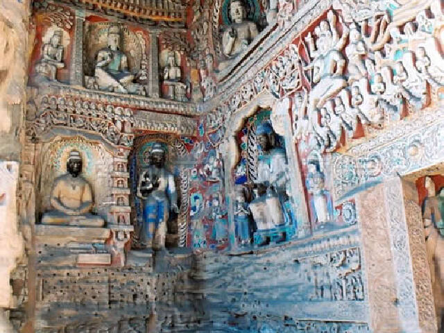 七佛洞石窟原为兴隆寺佛,它位于陕西省韩城老城西南10公里的卫东乡牛家坡村西沟内。因内有四大窟、七佛洞而扬名,是人们观光旅游、瞻仰佛像、回味历史意韵的地方。第一窟始建于宋崇宁元年,即公元1102年,能够看见窟内盛放着泥塑、浮雕神像和四块刻石。神像的损毁度较大,或断头、或缺腿。四周两壁上雕刻的七十二尊小佛,也均有程度不等的残缺。