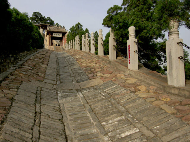 由太史坡上行,我们便将进入墓祠群。太史坡原为土坡,北宋时为防下雨路滑,特铺砌了石条。石上车辙历历,被风雨侵蚀得凸凹不平,是一条真正的千年古道。春秋时期,魏国在这里修建了少梁城,为了交通在前面这个土崖上开凿了这条大道,是韩城较宽、较长、较古老的一条道。后来,司马迁祠修建在其北侧,当地人便称此为“司马古道”。俗语有言:“下了司马坡,秀才比驴多”,是说这里地灵人杰,盛产人才和文人。