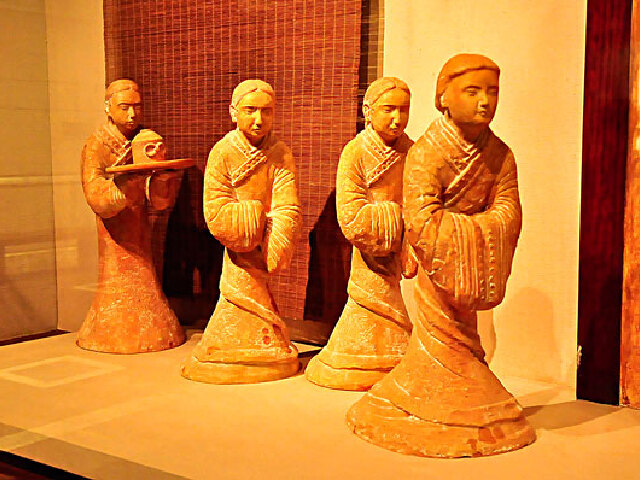 马王堆是西汉初期长沙国丞相、轪侯利仓及其家属的墓地,共三座,二号墓葬的是汉初长沙国丞相轪侯利苍,一号墓是利苍妻的墓,三号墓是利苍之子的墓,目前只有三号墓可供游人参观。三座墓出土珍贵文物约3000多件,绝大多数保存完好,有彩俑、乐器、兵器、印章、帛书、帛画、各种漆器等,漆器制作精致,纹饰华丽,光泽如新,还有大量丝织品如绢、绮、罗、纱、锦等,做让人吃惊的是那件素纱襌衣,其轻若烟雾,薄如蝉翼,衣长1.28米,且有长袖,重量仅49克,不禁让世人感叹古代织造技巧之高超。