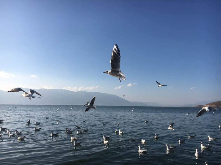 洱海的双廊、大理古城的洋人街烧烤、崇圣寺看三塔和理佛、苍山上坐缆车双景。我选择了洱海看海看鸟晒太阳。洱海边呆个三天不会觉得闷