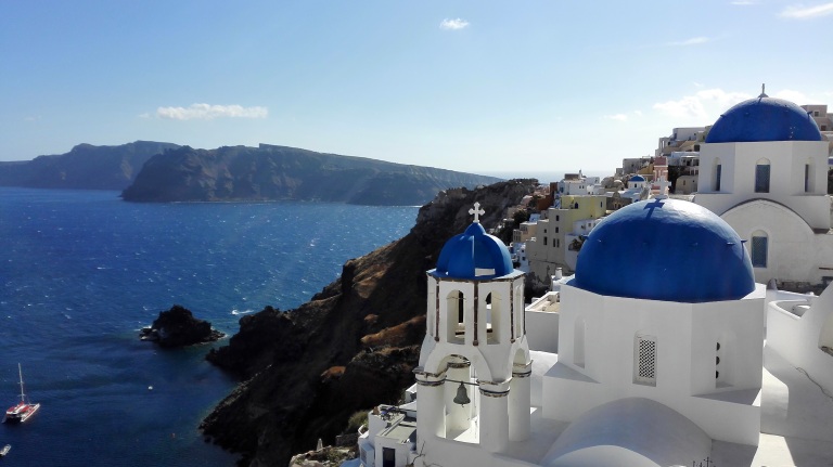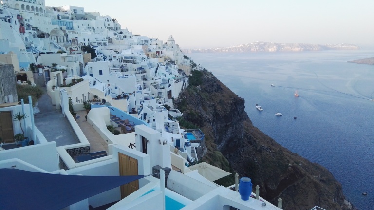刚从圣岛回来 住在菲拉的悬崖酒店 景色很美 都是自然景观 不涉及门票 吃饭很方便到处都是饭馆 还有逛不完的一家挨一家的小店 自来水不能直饮需买矿泉水 街上小超市0.7欧一大瓶(1.5L) 蓝色屋顶教堂在伊亚小镇 开车20多分钟
