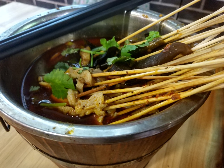 河西王府井五楼是一个享受美食的天堂,其中老长沙黑白电视便是一个能唤起长沙人儿时记忆的宝地,香喷喷的猪油拌粉,他温润的口感觉对能挑动你的味蕾,经典的热囟四合一、香辣串串桶和特色捆鸡也是香辣可口,味道刚刚好。更值得一提的是他们家的酸菜猪血汤和紫苏杨梅,酸菜猪血汤的猪血入口很细嫩,带点微酸味道很不错。紫苏杨梅是用紫苏、杨梅和冰块等一起秘制而成,把杨梅的酸甜味和紫苏的特色香味很好的融合在一起冰镇解渴,这个可以绝对可以给满分。可惜吃货吃的时候忘了上图片。店里的其他东西也都很不错,就不一一介绍了。周边还有剁椒鱼头店和吃蟹的店都排着长龙,应该也是很值得期待的美食。