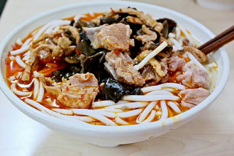 记忆中的家乡味道,最让我不能忘却的是这一碗邵阳米粉。小时候,每天早起都会拿着一元钱去家院子里的小店,点上一碗豆腐木耳粉,暖暖地将胃填满,然后展开一天的充沛校园生活。虽然邵阳米粉的价格一天又一天地上涨,却仍抵挡不了每次回家品尝的心情。大片牛肉粉、生炒牛肉粉、排骨粉、牛肚粉、豆腐肉丝粉、木耳肉丝粉、三鲜粉(蛋饺子 猪肚 香菇)……然后再搭配纯正的邵阳米粉,那鲜美的米浆好口感,~而面条也很有特色,选用的是邵阳特色的碱面,放入水中不要烫太熟,微生些口感更劲道。邵阳米粉重油重辣,吃上一碗满满的好味道!邵阳米粉历史悠久,从古代就已有,第九图就是在邵阳博物馆所拍!