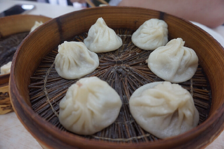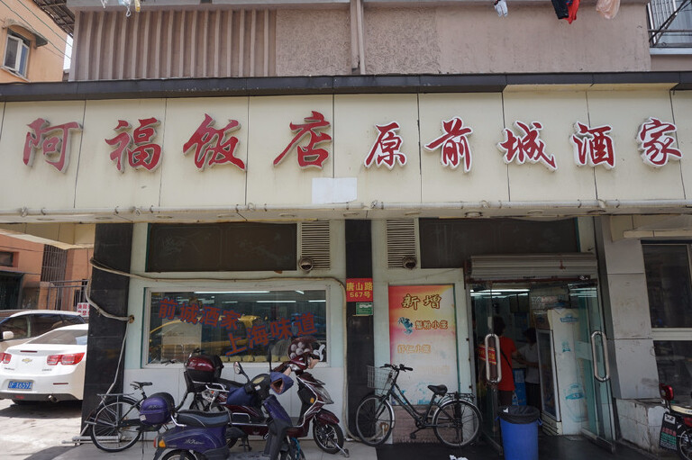 说到上海的早餐,毋庸置疑的是“四大金刚”(大饼、油条、豆浆、粢饭)最为有名,一些比较老式的小区附近都会有出售四大金刚的早餐店,越是巷子里的,味道越是好,如果你晚上想吃的话,可以去上海的霍山路,到了晚上也一定会供应。而如果只能选1种来代表的话,那只有汤包了,在大家印象中,上海的南翔汤包是最有名的,在上海的豫园就有一家,每天排队的人都很多,不过味道却不咋地,如果要品尝最好吃的上海汤包的话,我推荐2家,1家是万寿斋,1家是阿福饭店。万寿斋是一家老字号的汤包店,不过面积却和它的名气成反比,门面非常小,不过走在山阴路上很容易发现,因为这里时常聚集排队等候的食客。鲜肉小笼是每位来万寿斋的食客必点的,价格很便宜,7元一两(8个),如果只买1两的话,就给你个小盘子,如果买2两的话,才会给你蒸笼。万寿斋的汤包个头虽小,但是里面的汤汁很饱满,味道也鲜美,吃一个就想马上吃第二个。阿福饭店是一家吃上海小吃的餐厅,我住在虹口区的同学和我说,他们以前小时候,如果要吃上海的小笼汤包,只去2家店,一家是位于山阴路上的万寿斋,一家就是阿福饭店,可见阿福饭店的小笼包味道可以和上海有名的万寿斋相比。阿福饭店的小笼汤包能和万寿斋的汤包相比,一份汤包里有6个,一份6元,汤包的皮很薄,里面的汤汁很多,略带有甜味,但是还达不到无锡汤包的那种程度,鲜而不腻,吃汤包的时候先开一个小口,可以吸到满满的一口汤汁,相当满足。