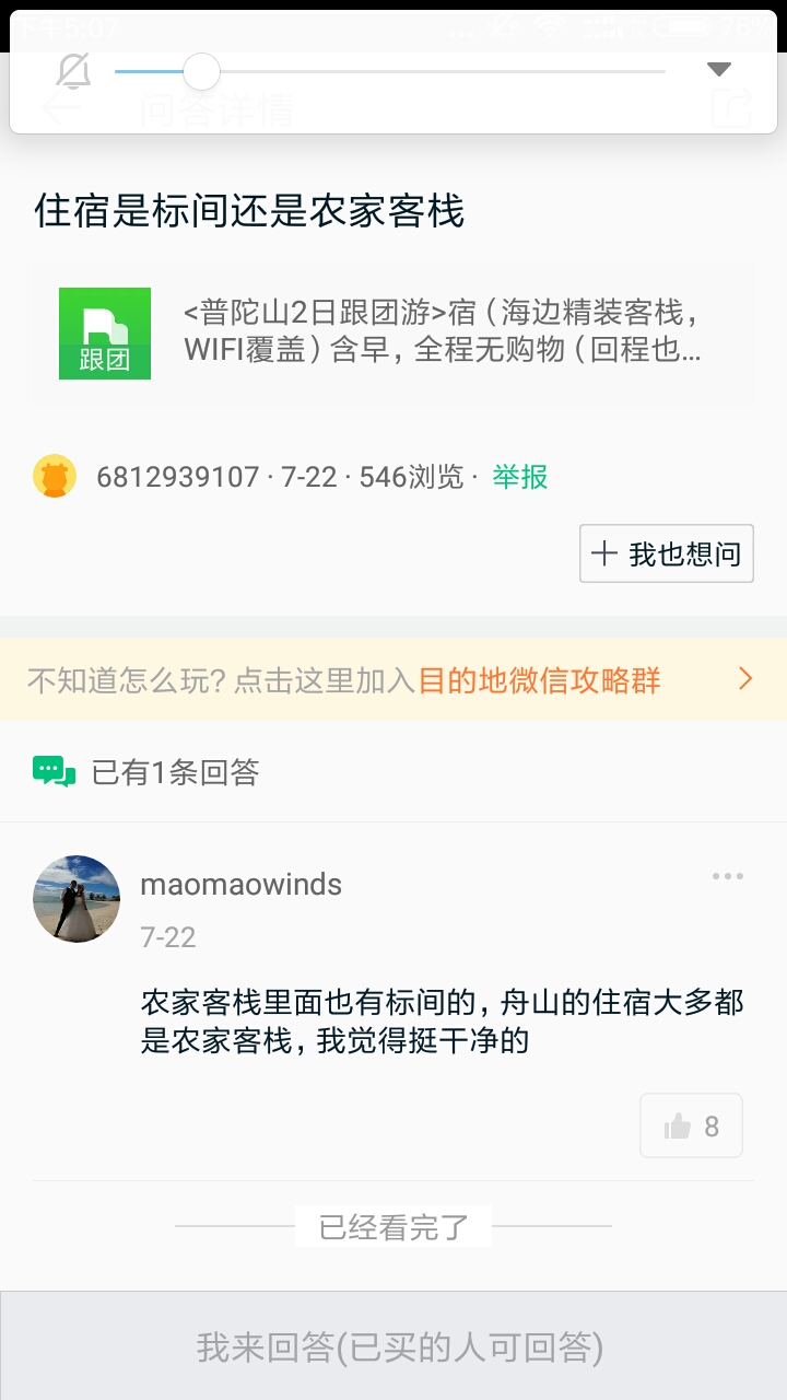 楼下一说我也注意到了,那个人好像很熟悉普陀山旅游,什么都知道,重点是已经购买才能回复,他说他还没去也就是没定,就能回复这不是矛盾吗?