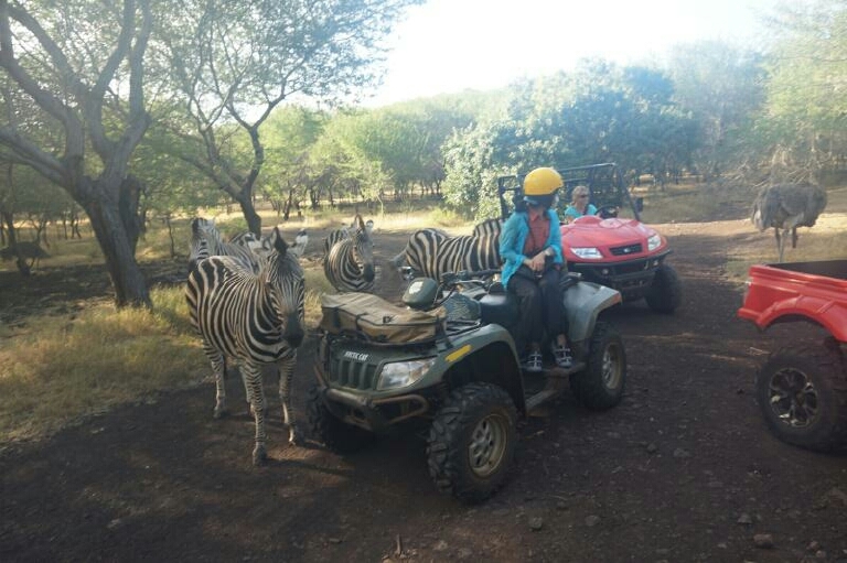 我去过的最有趣的景点是毛里求斯的鸟公园。毛里求斯是非洲岛国,鸟公园具有非洲原始草原和森林的气息。鸟公园最大的乐趣就是驾驶四驱车穿梭于草原和森林中,即便你不会开车也没关系,在出发前可以做培训,很简单,大概半小时的时间。进入到景区中,道路都是坑坑洼洼的,各种斜坡,挺刺激的,有种探险非洲草原的感觉。鸟公园里的动物主要有鸵鸟,斑马和毛里求斯特有的象龟,游客都能近距离的和这些动物接触。。鸵鸟的眼睛很大,而且很敏锐,你身上有吃的都能被他们发现,不给他们还会拿嘴戳你的头,还好带着头盔,不过鸵鸟也挺傻的,我们都已经走了,它还傻乎乎的追着我们跑了很久,我倒觉得这样子有点像纪录片中鸵鸟追逐的画面。象龟是毛里求斯特有的动物,别看他们动作很缓慢,但是一旦给他们点植物吃吃,他们比谁都激动,而且这股劲可以感觉得到。鸟公园的魅力就是在于四驱车的驾驶以及和动物近距离的接触,在前行过程中还能欣赏非洲的景色,所以我觉得这是一个很有趣的景点。
