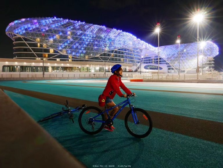 作为f1车迷,作为法拉利车迷,作为kimi的车迷,除了意大利蒙扎更吸引我的是阿布扎比的法拉利主题乐园和亚斯码头赛道夜骑。今年寒假去到阿联酋,特地安排在周二去那里,只为赛道免费开放日。事先有完整的预约系统,所以拿到的头盔和自行车都是和自己身高体重相适应的。赛道分专业和业余道以及步行道,在中途还设有休息站提供免费饮用水。在阿联酋,水就是软黄金,由此可见土豪国真的不差钱。每条f1赛道其实都会有上下坡,一边单脱手直播一边骑还是挺喘的。(https://www.meipai.com/media/654065283)最后还摸到了偶像当年拿到冠军后留下的手印,满足了!