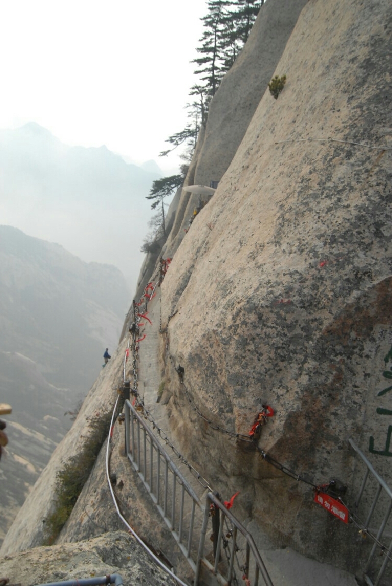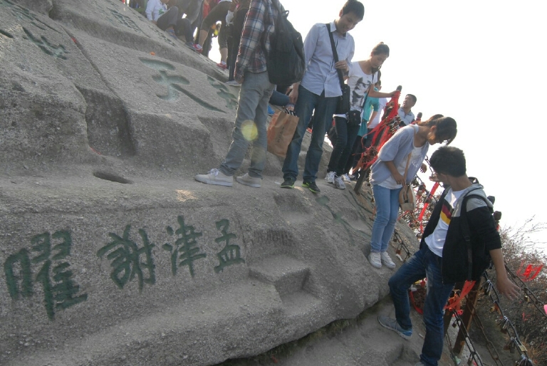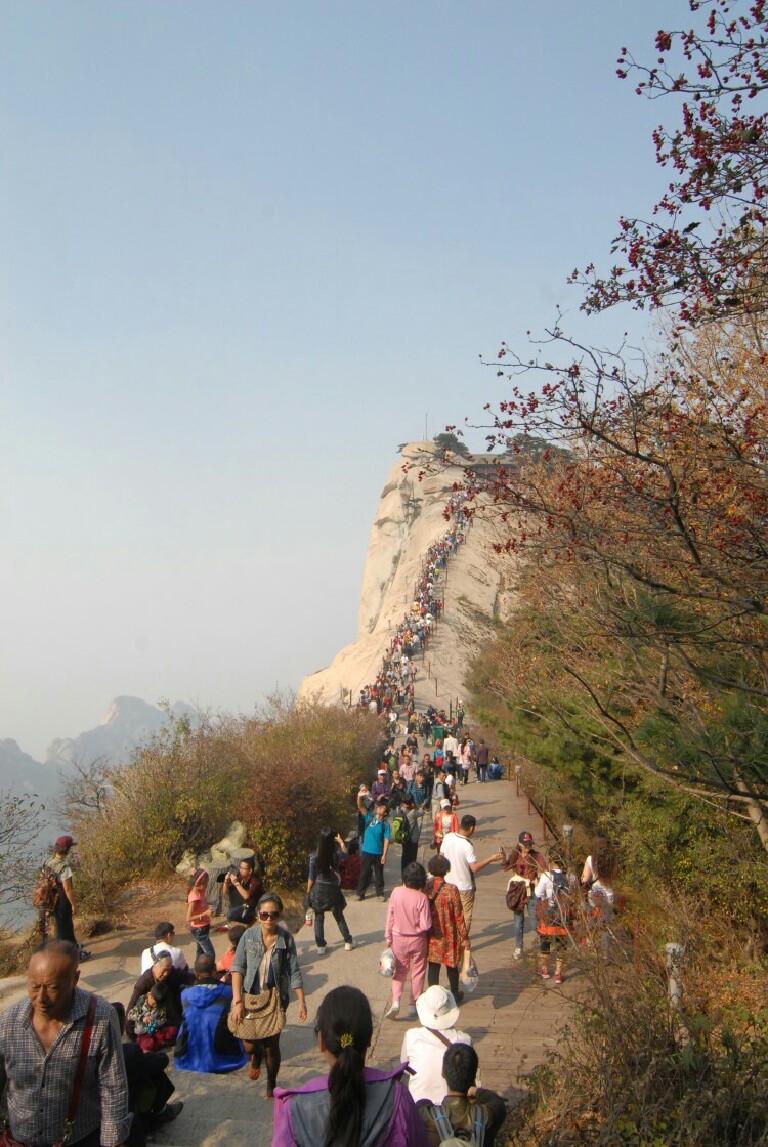 华山的线路分为西线和北线,对应的就是西线索道和北线索道,西线索道比北线索道要新,而且西线索道的距离也比较长,因此索道的票价也比较高。如果徒步登山的话,那就从北线上去。我去华山的时候去只游览的西线线路,因为正好是十一,人比较多。华山一共有5个山峰,东南西北中,东峰海拔2096.2米,被称为朝阳峰。南峰海拔2154.9米,是华山最高主峰,也是五岳最高峰,西峰海拔2082米,又因有巨石形状好似莲花瓣,因此被称为莲花峰。中峰2037.8米,是东峰西侧的一座小峰。北峰则是游客去的最多的山峰,也可以称为云台峰。刚才也说了,只有北峰和西峰是有索道的,我是觉得西峰和南峰可以一去,乘西线索道都可以看到,西峰山顶还有个三圣母殿,从西峰到南峰的路程也不是很远,大概1小时可以到达,南峰旁边还有华山最为惊险的长空栈道,胆子大的游客可以体验一把。