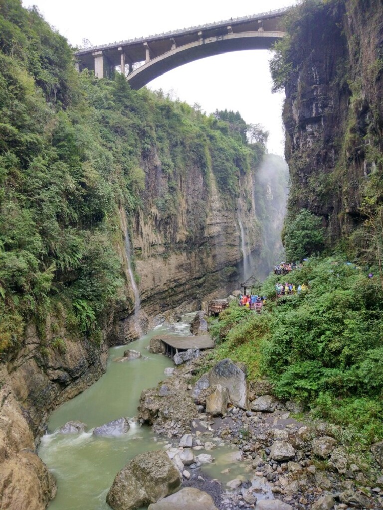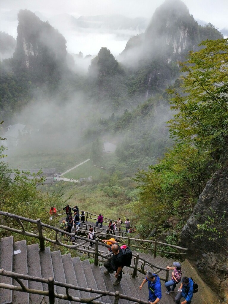 喜欢自然风光的话,不要错过恩施大峡谷。恩施大峡谷是清江大峡谷一段,最大的景观特色是两岸典型而丰富的喀斯特地貌:有天坑,有地缝,还有近乎垂直于峡谷的大断崖,简直是大自然鬼斧神工之集大成作。云龙河地缝形成于5千万年前,是世界上唯一两岸不同地质年代的地缝。 全长3.6千米,大约1个半小时左右能走完。最初要先走过横跨地缝的云龙桥,站在桥上向下张望,一条幽深的地缝出现在视野,曲折蜿蜒,不见首尾。郁郁葱葱的树下,两岸山峦裸露的剖面非常清晰,不禁想象着两边撕裂产生地缝的动态过程。沿着地缝旁的游道行走,期间奇石林立,飞瀑狂泻,流水潺潺,空气清新。逛完云龙地缝景区,乘坐景区公交来到七星寨景区,一下车,景区门口旁巍峨的群山就震撼到我;座座陡峭高耸,非常壮观。七星寨景区可谓恩施大峡谷最精华的部分,有两大亮点。一是凌空架于石壁上的悬空栈道绝壁长廊,二是大峡谷的最核心景点一炷香。此外,漫步山间,能欣赏到独有的喀斯特地貌,万丈悬崖凹陷于丛峰之中,也有四面绝壁突兀于丛峰之上。爬山途中,往外眺望,薄薄的云雾笼罩着山峰。雾在山间漂浮,如同画家泼墨,画成一幅幅丹青。那影影绰绰的群山,仿佛披着蝉翼般的薄纱,凝眸不语。视线收回到近处,芳草青碧,翠林如海,而附近的山峦也是形态各异,想起那句“横看成岭侧成峰,远近高低各不同”,恰是传神。说到美食,恩施米豆皮很受当地人喜爱。豆皮酥滑鲜嫩,还有淡淡的香味。