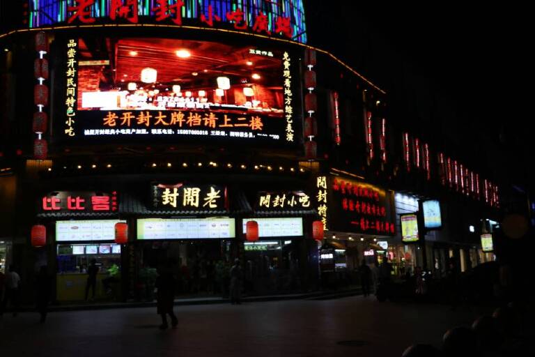 开封是个古都城,知名的小吃很多,据说仅上了国家名小吃榜的就有九十多种。开封大型的小吃成有许多处,这些小吃城不仅供应餐饮,而且还有免费的文艺演出。小吃城里各种小吃风味独特,价格便宜,服务周到。一般来讲二三十元就可以吃饱吃好。游客在这里一边歇脚,一边品尝着当地的美食,一边欣赏着精彩的表演,这种感觉溢于言表。