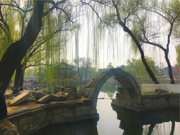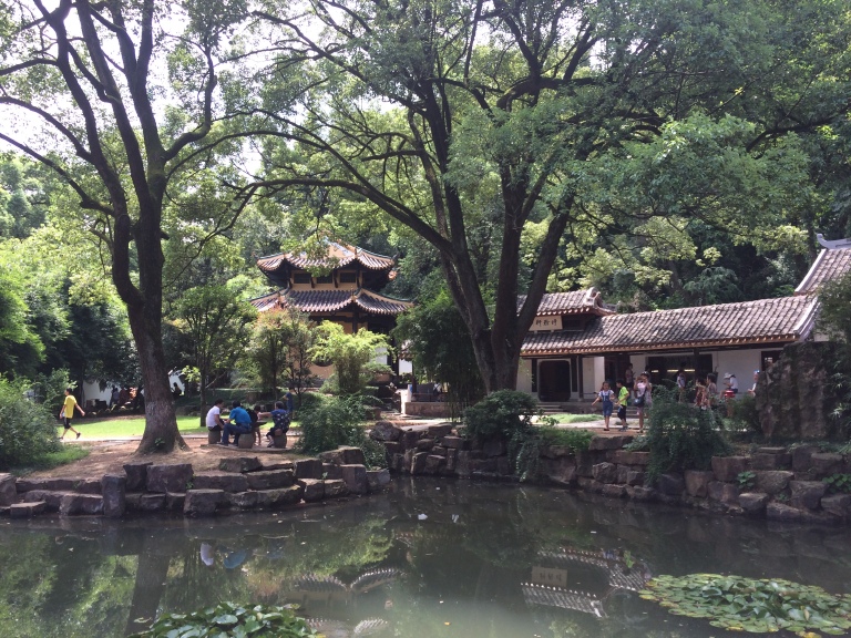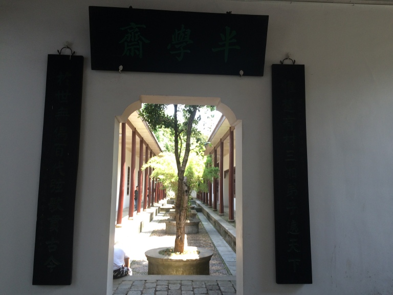 爱晚亭正对着岳麓书院的正门,“岳麓书院”几个苍劲有力的大字深深吸引了我,进了大门后,里面的美丽风景美不胜收。书院周围绿树环绕,空气清新,两座石桥横跨在溪上,伴着潺潺的流水,曲幽通径。