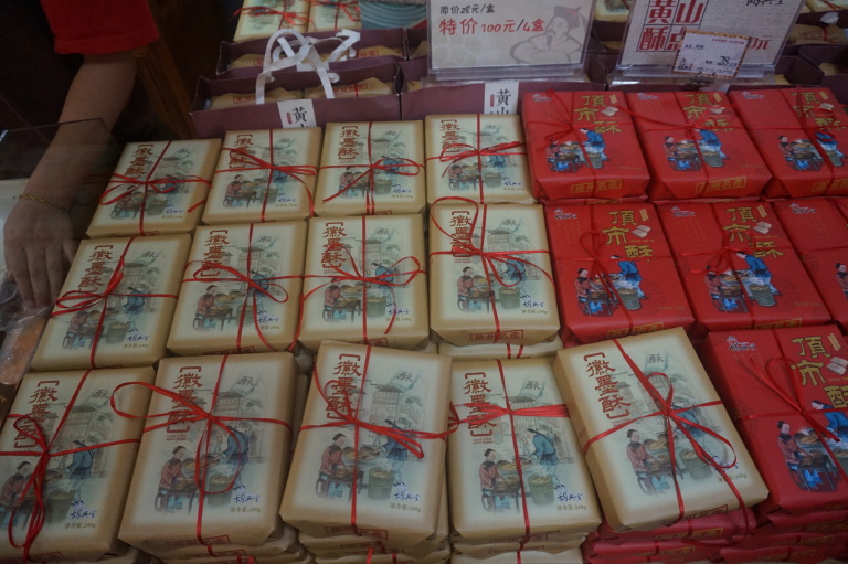 豆腐:看起来可怕,吃起好香啊,感觉跟大长沙的臭豆腐有得一拼。还有臭鲑鱼,也是黄山这一带的特产美食-梅干月饼 为休宁县特产。其表皮是油酥皮,用上等面粉与素油搅拌加工制成,饼焰采用野菜(苦板菜),经过腌制加工,拌以新鲜猪板油和白糖而成。毛