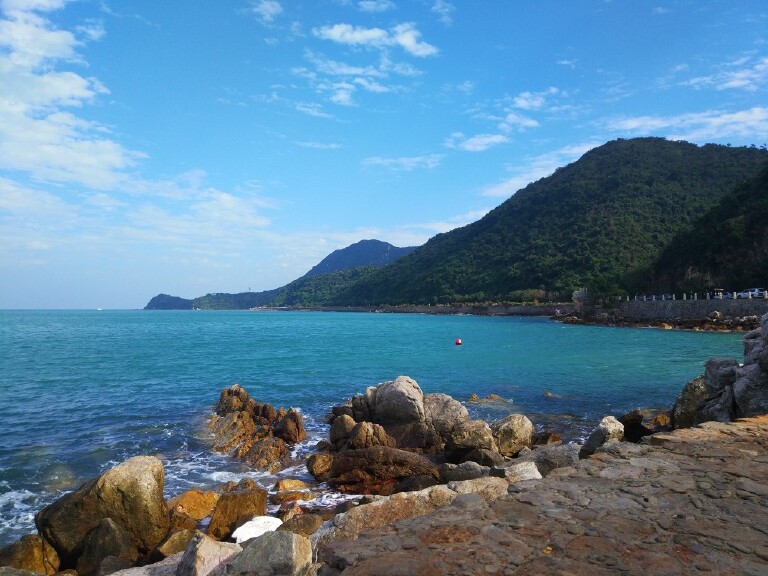 四月份到深圳来玩,靠海,可以到《美人鱼》拍摄景点杨梅坑玩,风景很美。杨梅坑道路两旁风景迥异,左边大亚湾蔚蓝的海水,右边是郁郁葱葱的山峦,形成一幅撩人心弦的山水画卷图。走了约半小时后就发现了沙滩,有许多游客会聚在那里拍照或者玩沙。杨梅坑的海岸边还分布着数处精美幽静的小沙滩,可谓是垂钓、拾贝的好地方。洁白的浪花,银色的沙滩,共同构成了欢乐元素,在碧海蓝天下,每一个嬉戏玩耍的动作似乎都能深刻地刻印在心中。海边礁石也是一道不可缺少的风景线,一道又一道的浪花气势澎湃地扑向了礁石,在它们脚下被打成泡沫,而后静静地散开......坐在礁石上,忧虑与烦闷统统随风飘向远处,看海的记忆就像花香,沉浸过后难以遗忘。这里汇聚最好的摄影工作室拍摄基地,风景秀丽,两侧林木茂盛、鸟雀争鸣,能看到许多情侣穿着婚服在这边拍结婚照。