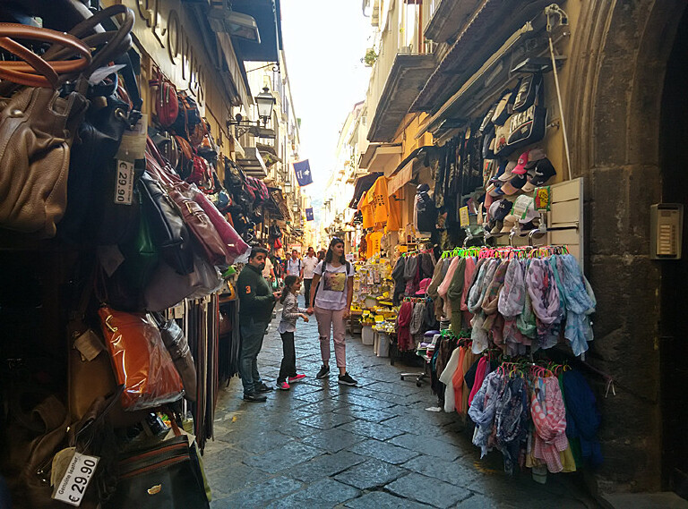 第三站:苏莲托(Sorrento),坐船从海上来到苏莲托,迎面而来的是几十米高类似城墙的垂直防御体,然后要攀上悬崖,到达现代城市,到达繁华的街道和集市,你还需沿着“天梯”奋力攀登。中国人第一次听说苏莲托,是由于一首优美的意大利民歌“重归苏莲托”。可惜我们时间紧张,只是转了苏莲托小城。小城以塔索广场为中心,周边呈放射状交错纵横的小街小巷,开满了精致的各类小摊小店,琳琅满目的特色商品,让人目不暇接。