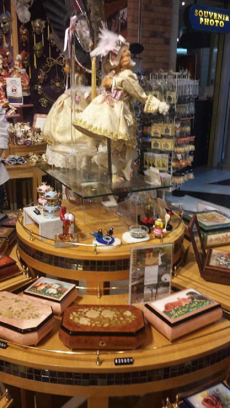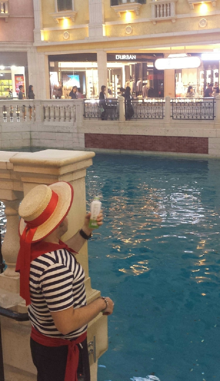 建议去威尼斯人酒店二楼的大运河购物街,它是模仿水上之都威尼斯所打造的,天花板也刷成了湛蓝的天空,刚映入眼帘的时候会不由惊叹,真的有种置身于意大利威尼斯的感觉。搭乘贡多拉船要凭电子凭证到贡多拉礼品店盖章,然后到搭乘处排队。话说,排队的人真心多啊,而且是来自不同的国家,如韩国等东南亚国家,大家纷纷都是慕名前来,脸上都洋溢着期待的喜悦。一趟约15分钟,由一个船员带着四个游客乘着贡多拉船荡漾在大运河里,欣赏着沿途的建筑风光。船员也会即兴唱歌,或加入你的自拍,让过程变得更加有趣味。我们是和两个韩国女生一起搭乘,然后女船员姐姐(忘了她是哪国的,好囧)给我们唱威尼斯船歌《桑塔露琪亚》,期间还引导我们唱中韩的一些著名的歌曲,挺逗哒~~