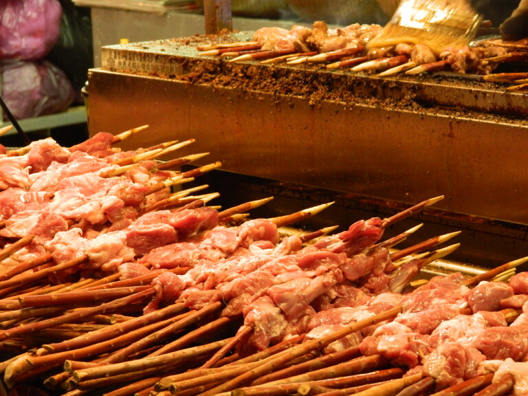 西安:羊肉串走起走起,羊肉泡馍我要自己手捏好吗,辣的时候加上老酸奶,西安有很多种美食做法吃法都与羊肉泡极为相似,比如水盆羊肉(推荐回民街老金家)、葫芦头(回民慎入)和粉汤羊血(当地话“粪汤羊泄”)等等。回民街能一路刷到底