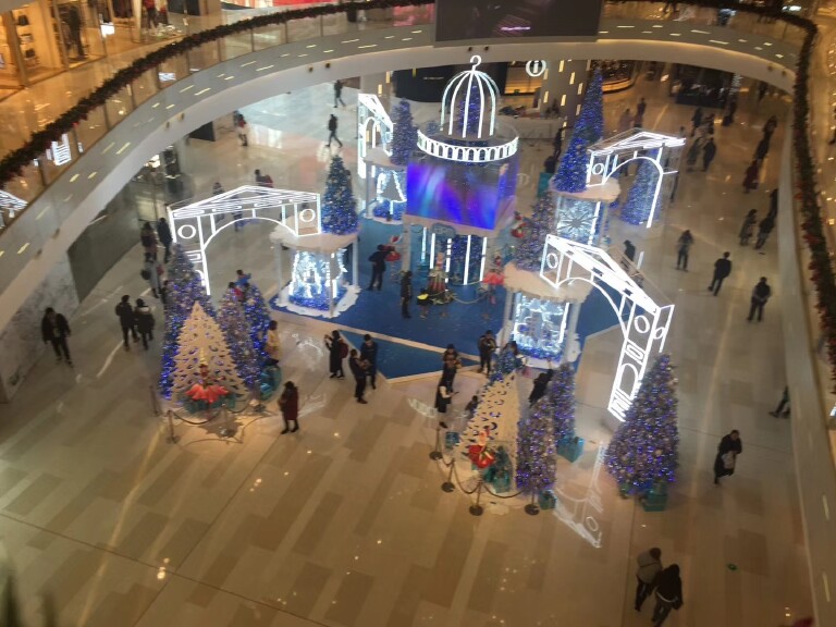 今年的圣诞节当天,我也外出逛逛,享受了一把西方节日的快乐。去了久违的淮海路上的环贸广场,进入广场,就感受到了浓浓的节日氛围,那里美女造型和圣诞树的摆设,交相辉映,特别是圣诞树上不仅灯光闪亮,而且挂满了大大小小的各式礼物,呈现出一派喜庆的气象。